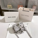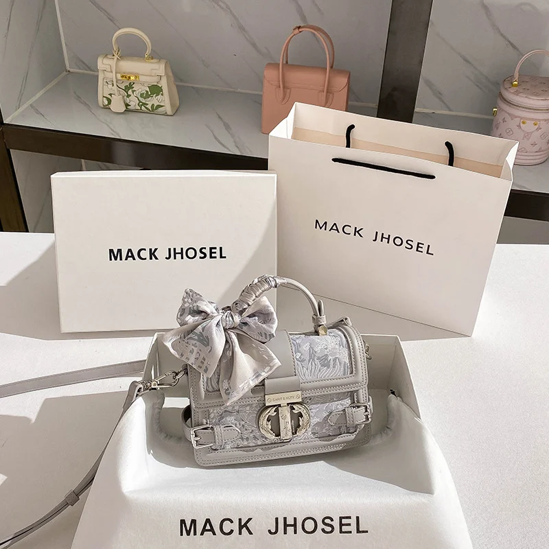 Crossbody Shoulder Handbag for Women – Small Square Woven Strap Scarf Accent Princess Diana Style Bag