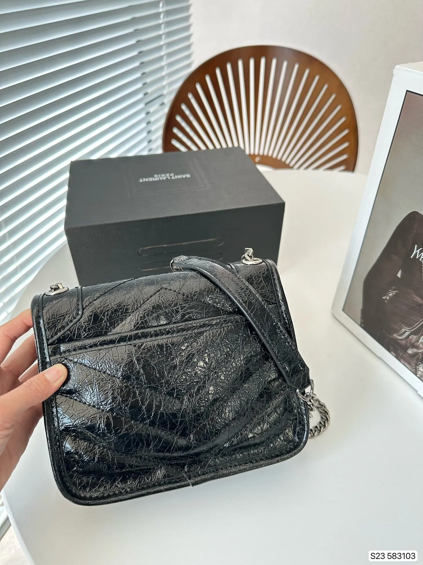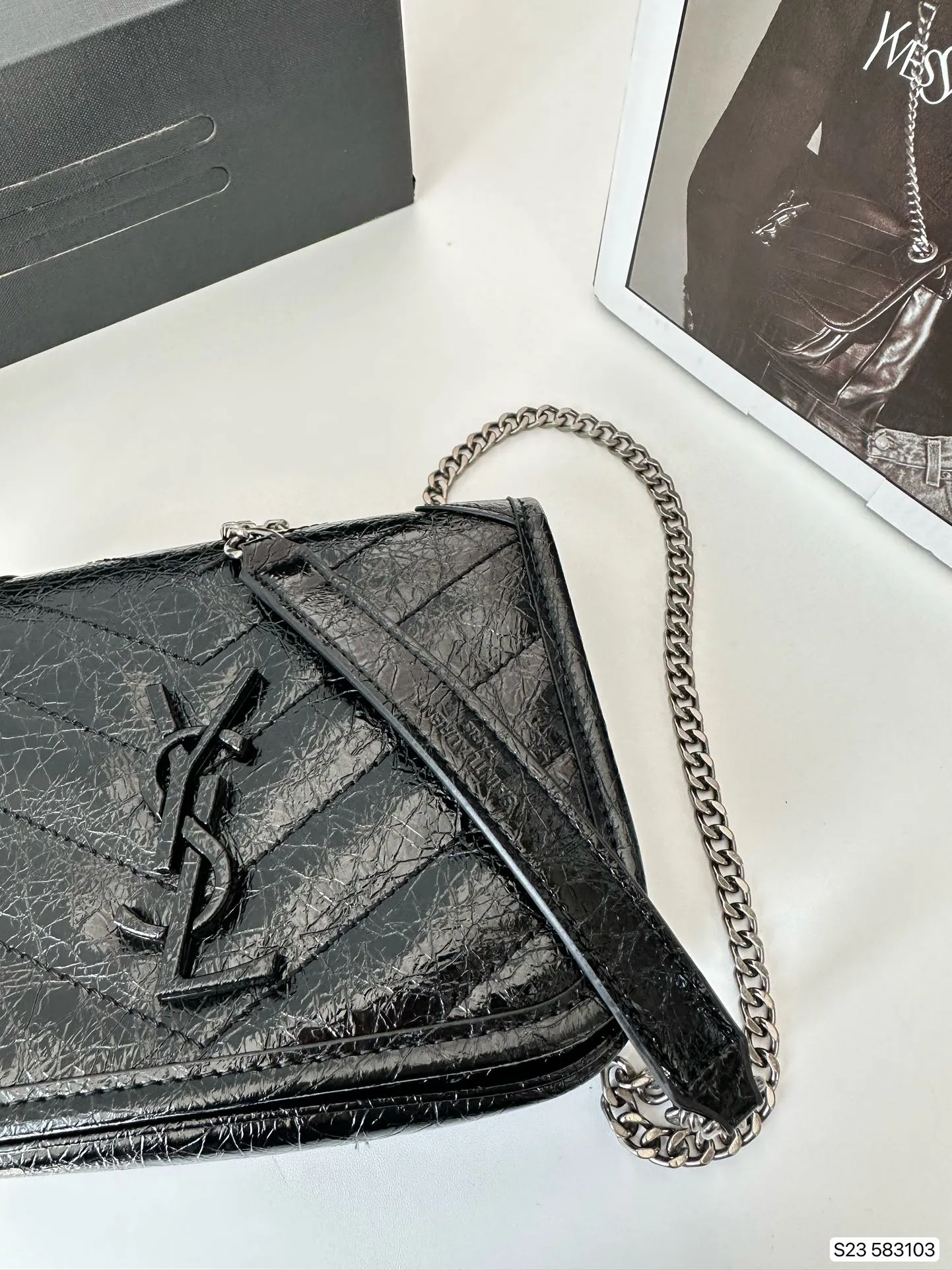 Saint Laurent Niki Vintage Leather Chain Wallet Black 19Cm